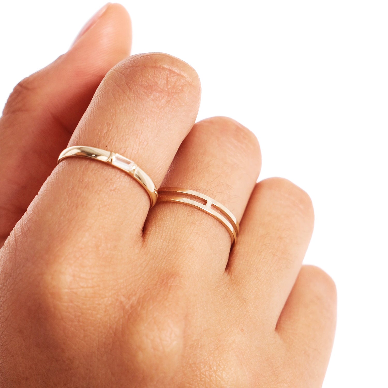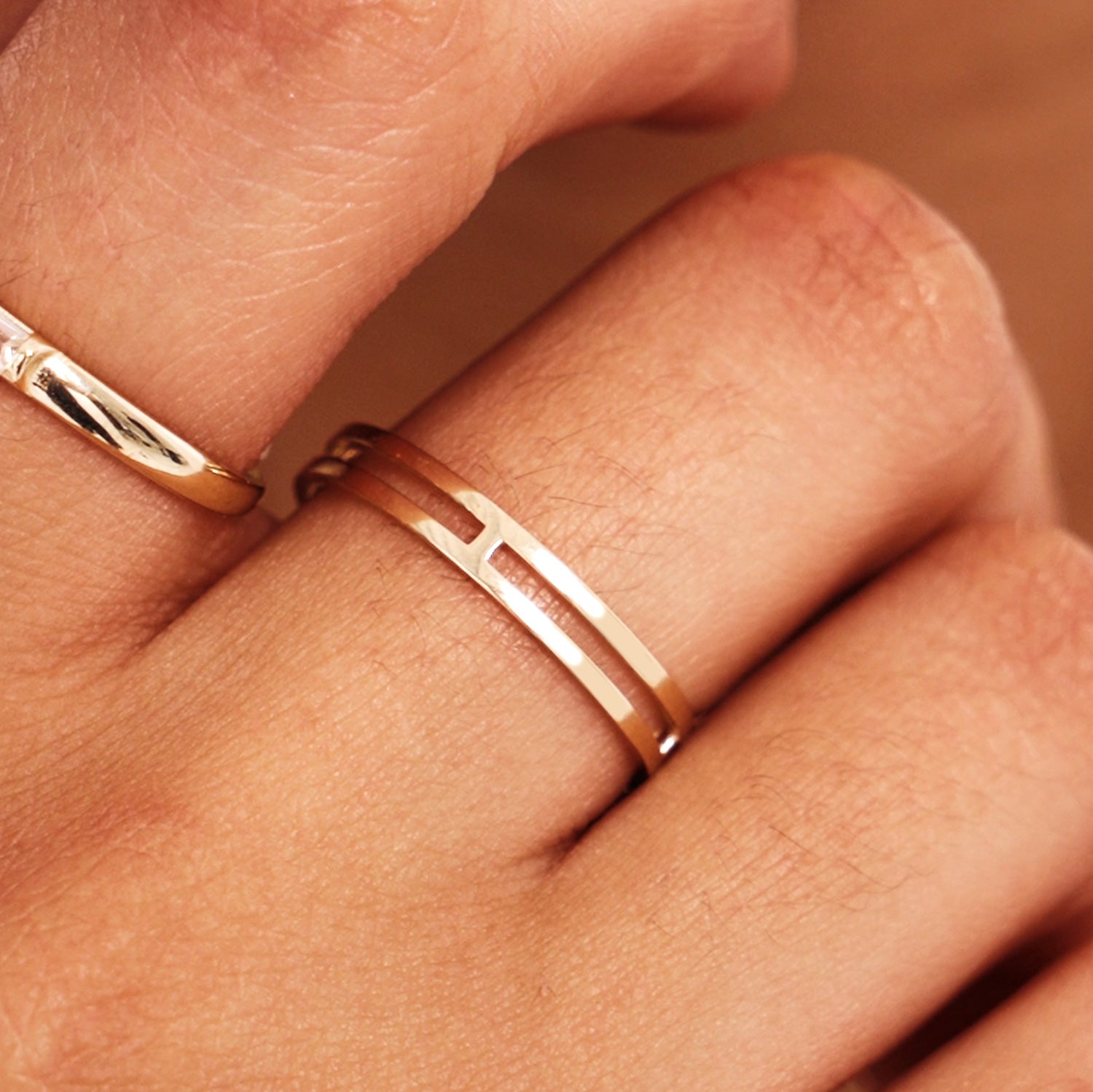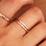 14K Solid Gold Double Band, Minimalist 2 in 1 Ring