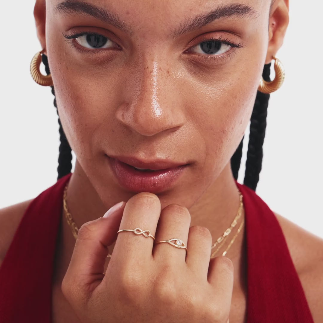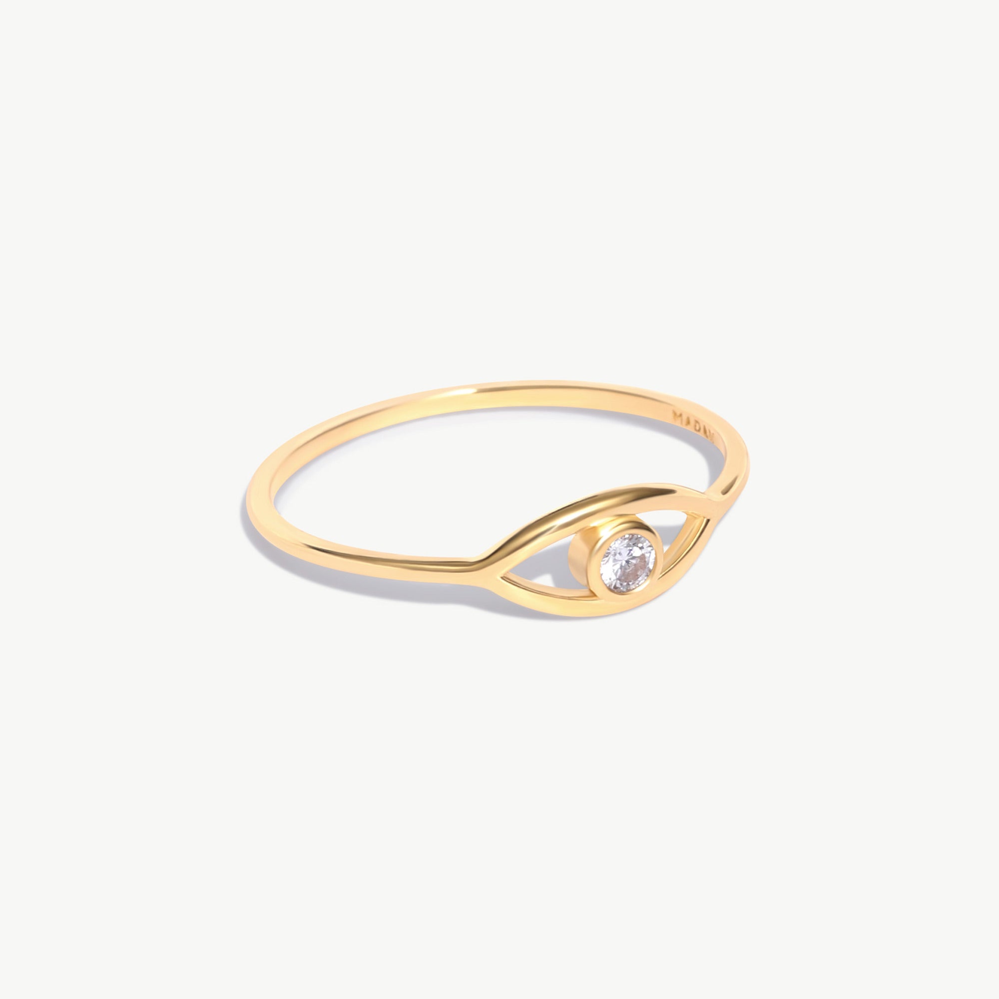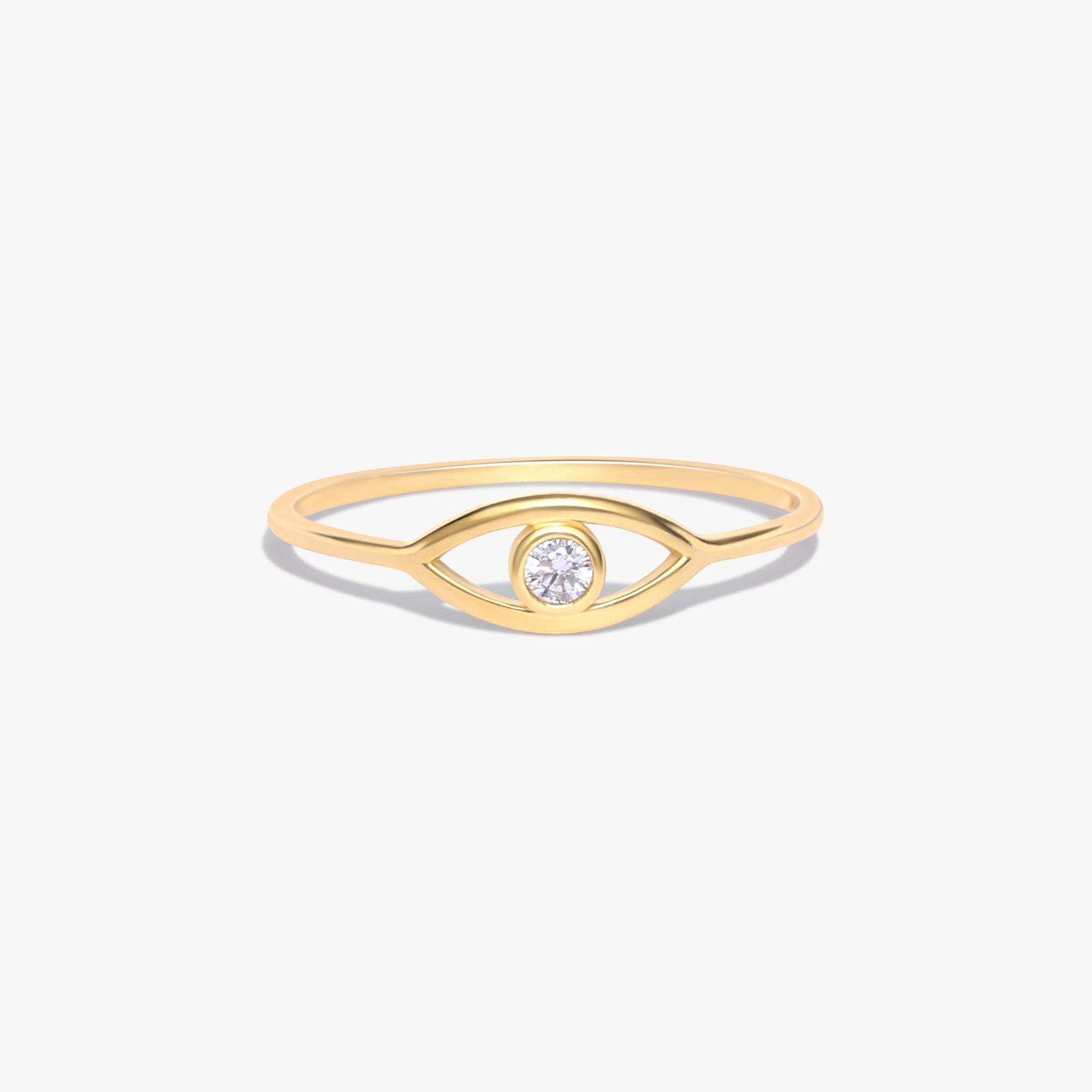For centuries, the evil eye has been worn as a protective talisman, believed to guard against negativity and attract good fortune. Crafted in sleek 14K solid gold, this ring makes the ancient symbol feel modern and refined. Its minimalist design ensures it can be worn daily, either on its own as a statement piece or stacked with other bands for a chic layered look.
