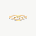 14K Solid Gold Diamond Evil Eye Ring - Protective Stacking Band