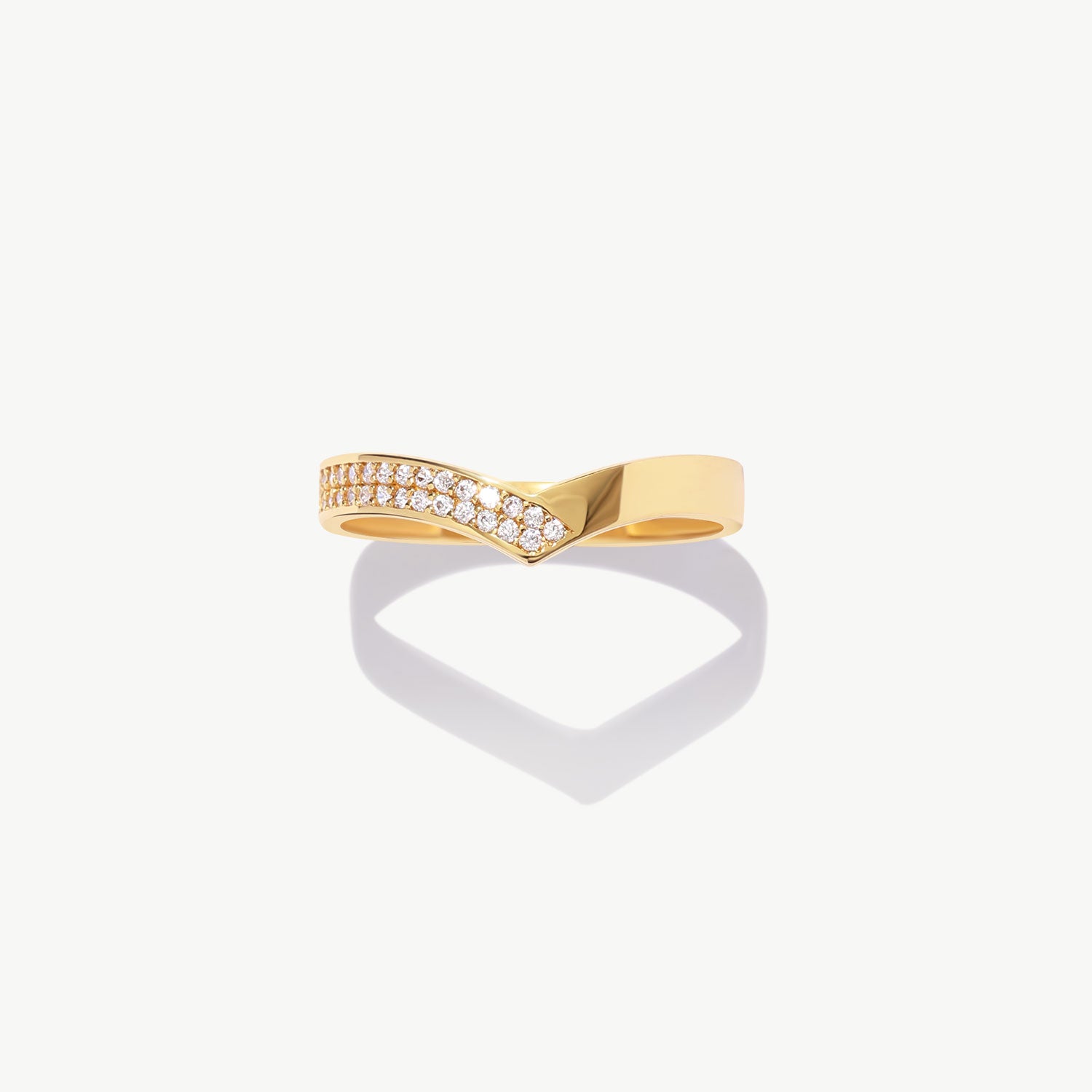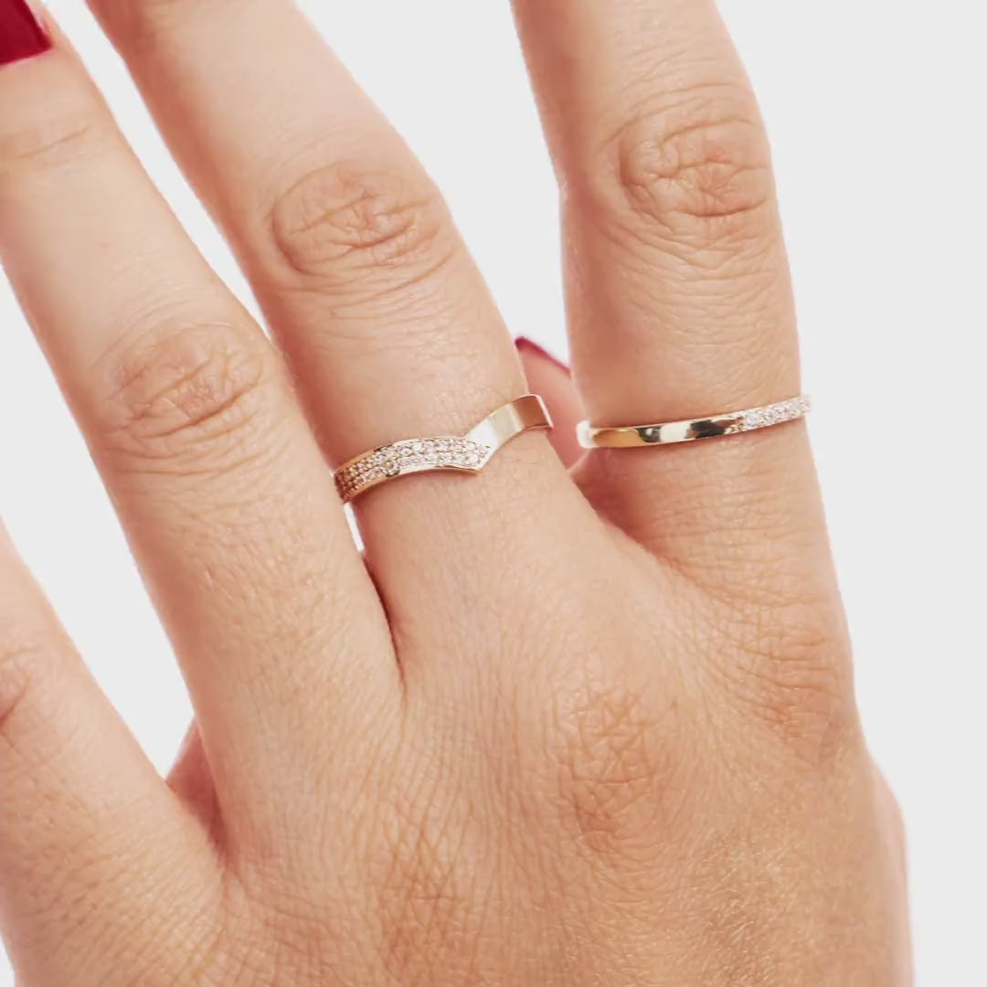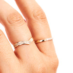 14K Solid Gold Diamond Wishbone Ring: Half Eternity Band