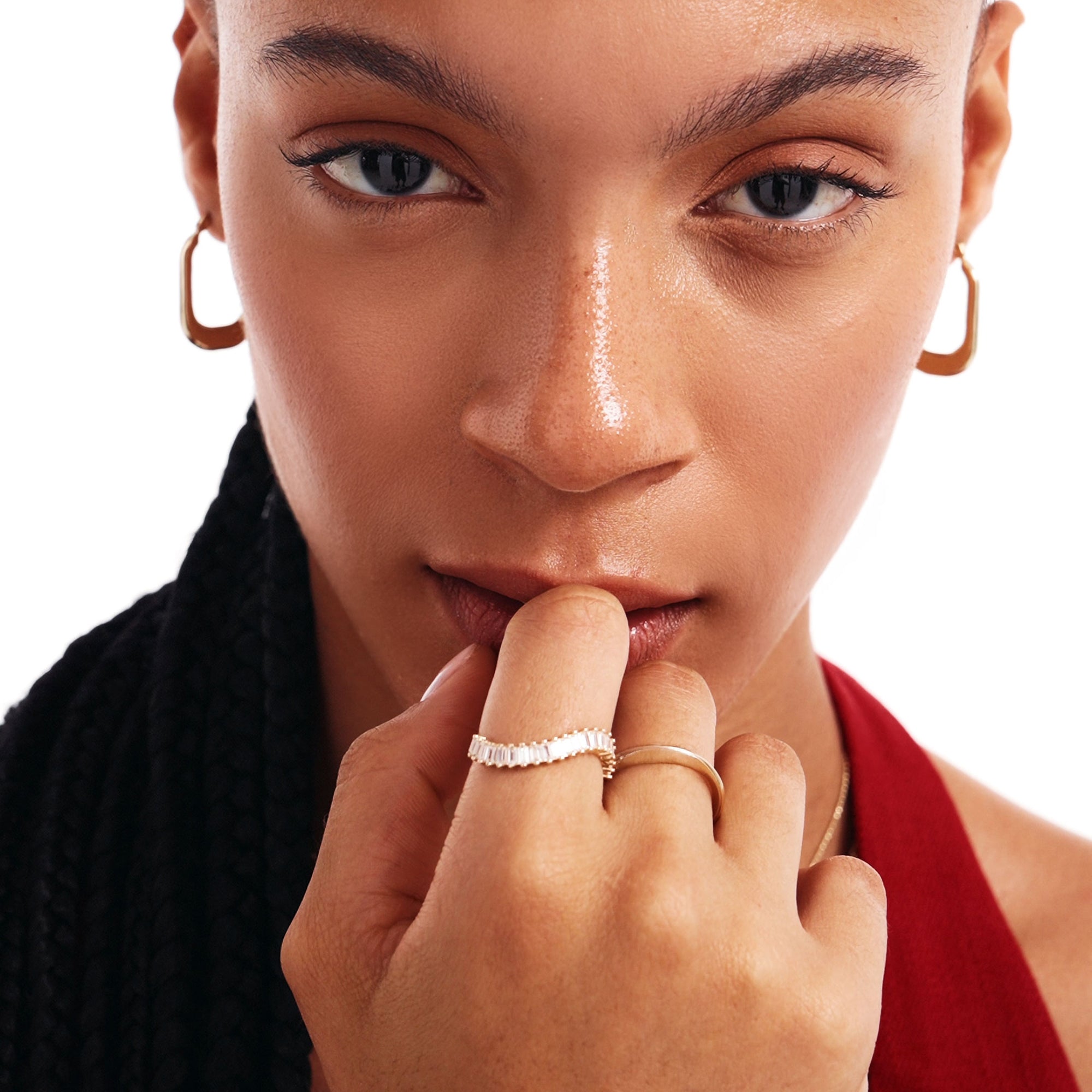 Crafted from solid 14K gold, the slender yet durable band (0.7mm thick, 1.7mm wide) ensures comfort and resilience for everyday wear. The brilliance of baguette diamonds gives it an elegant yet striking look that shines from every angle.