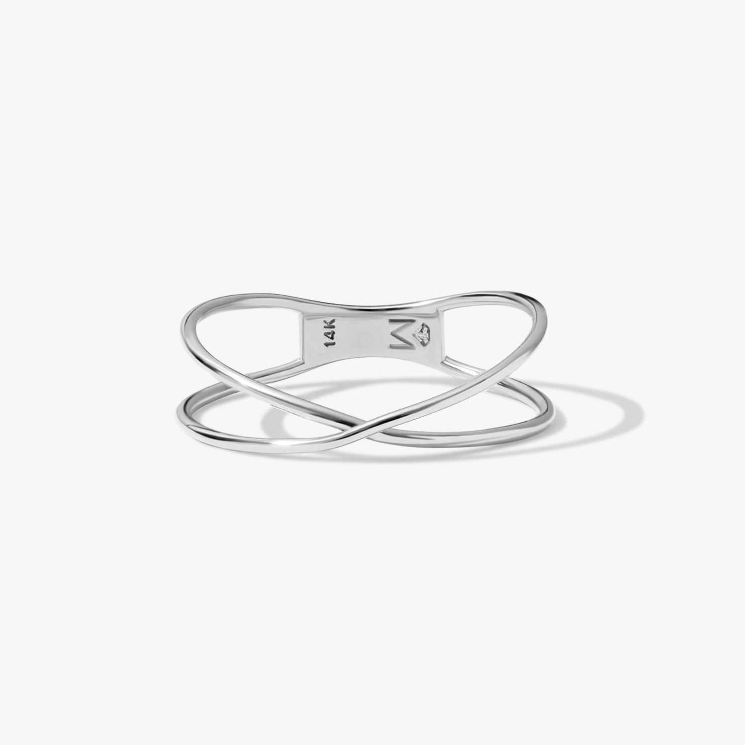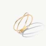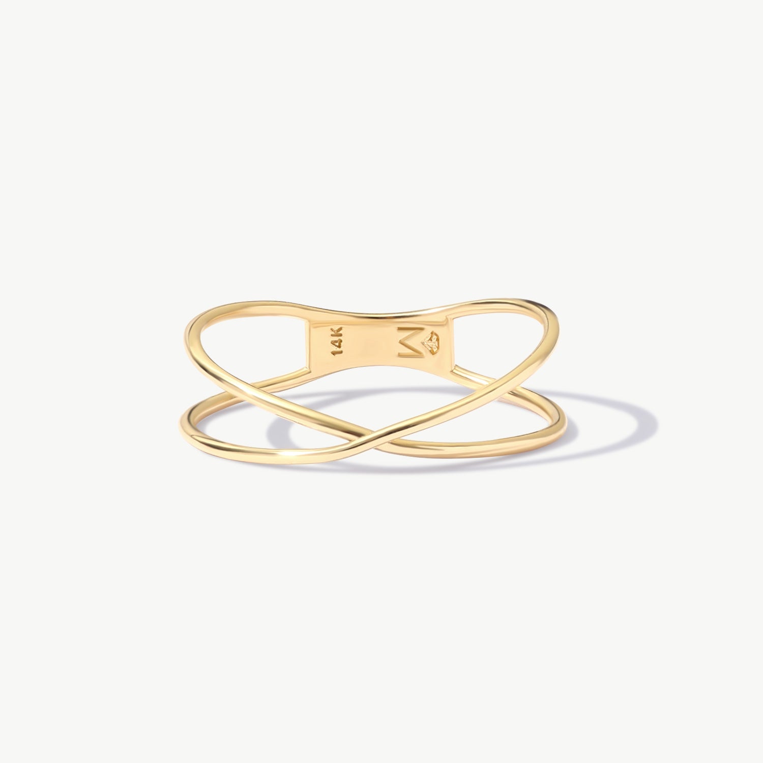 14K Solid Gold Crossover Ring, Minimalist Criss Cross Design