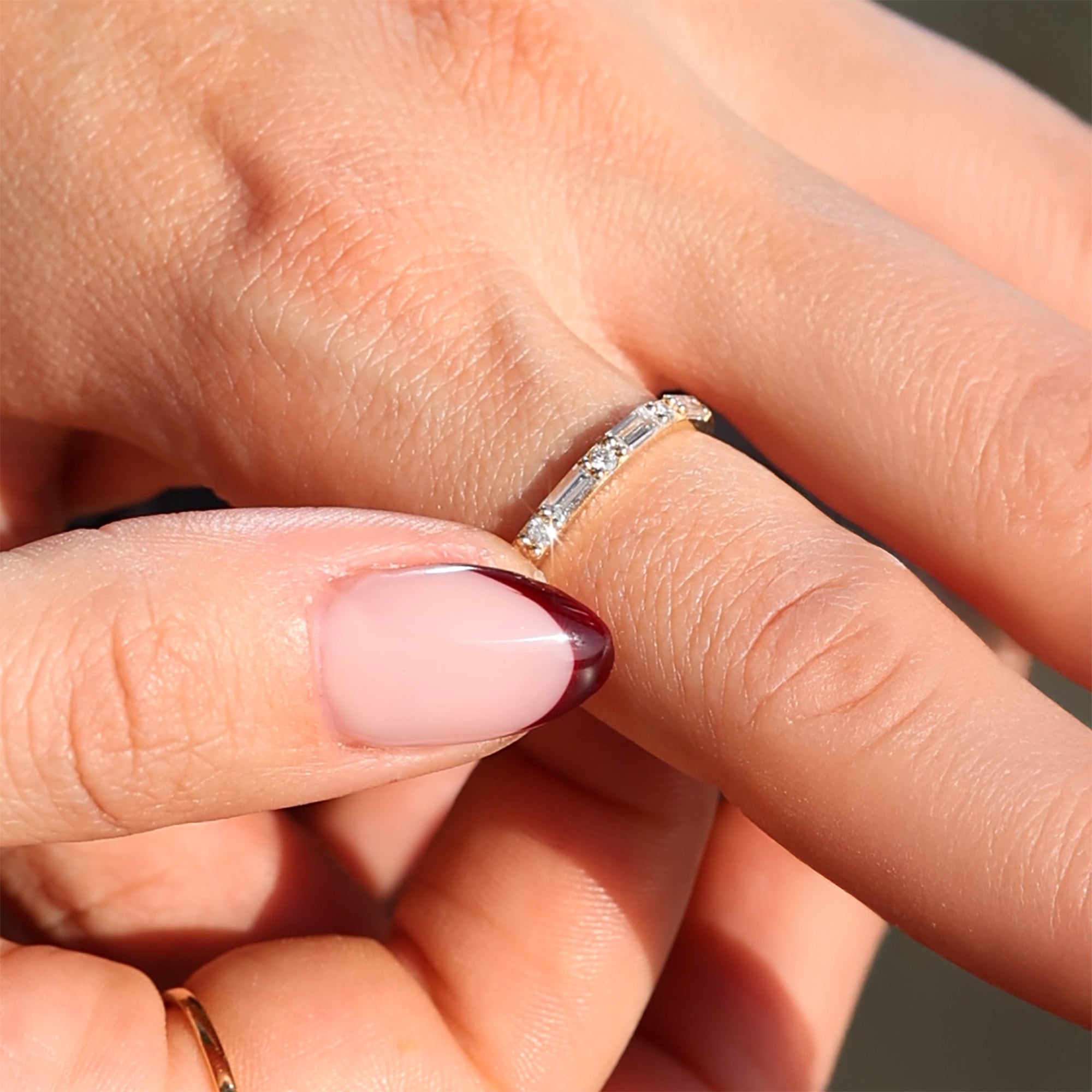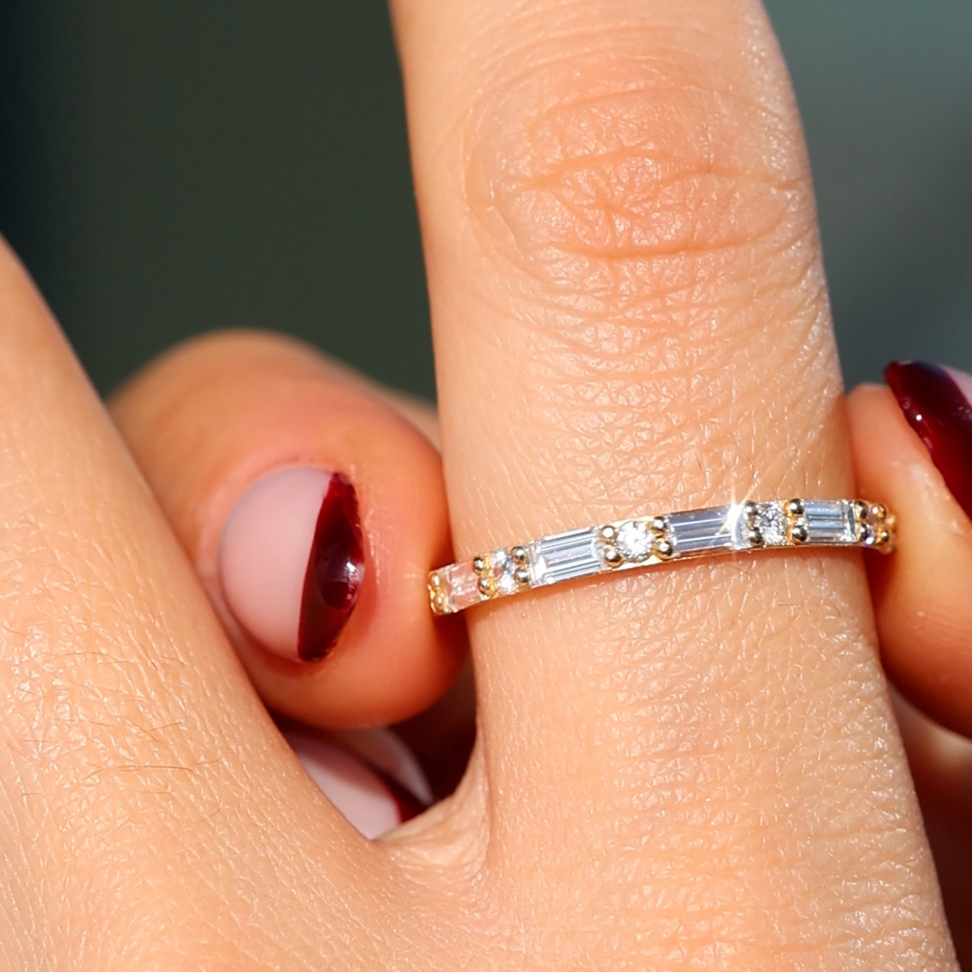 The design’s half eternity setting makes it both practical and graceful — ideal for everyday wear yet dazzling enough for special occasions. Whether worn as a wedding band, anniversary ring, or part of a stacked set, it’s a symbol of enduring beauty and mindful craftsmanship.