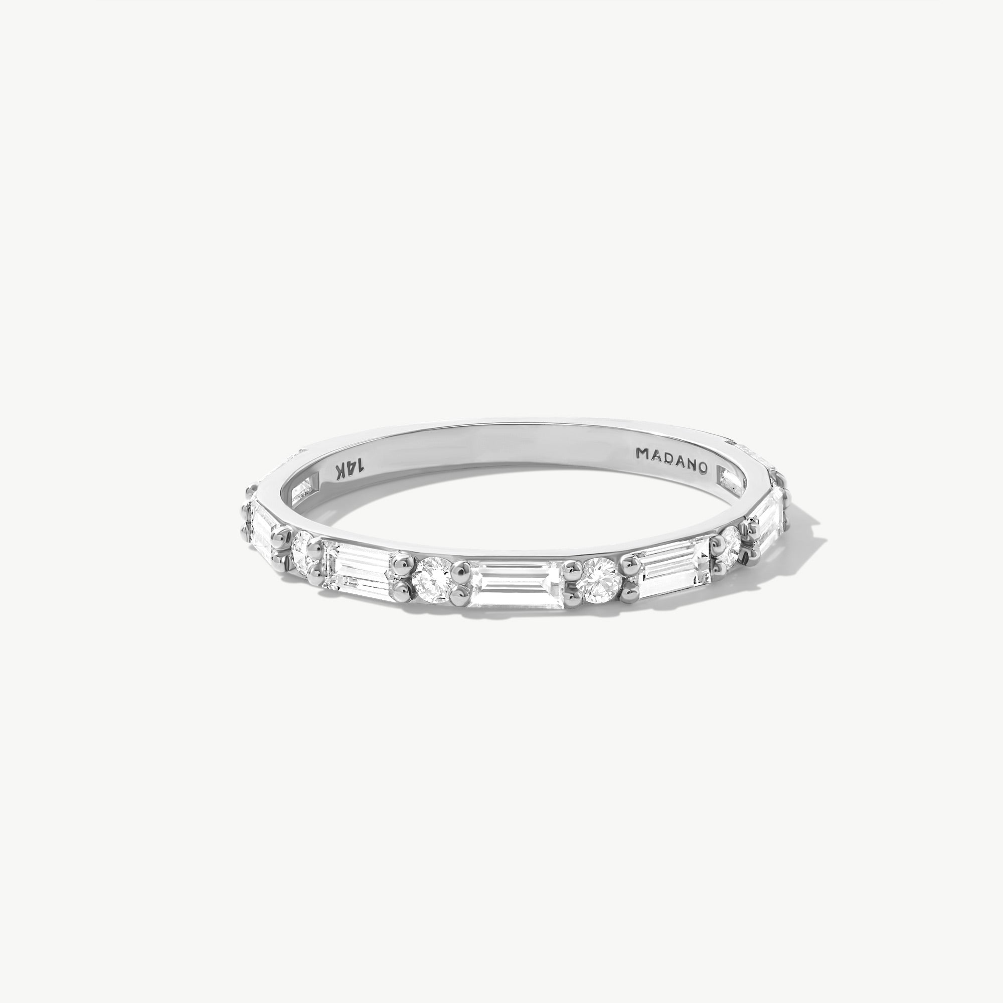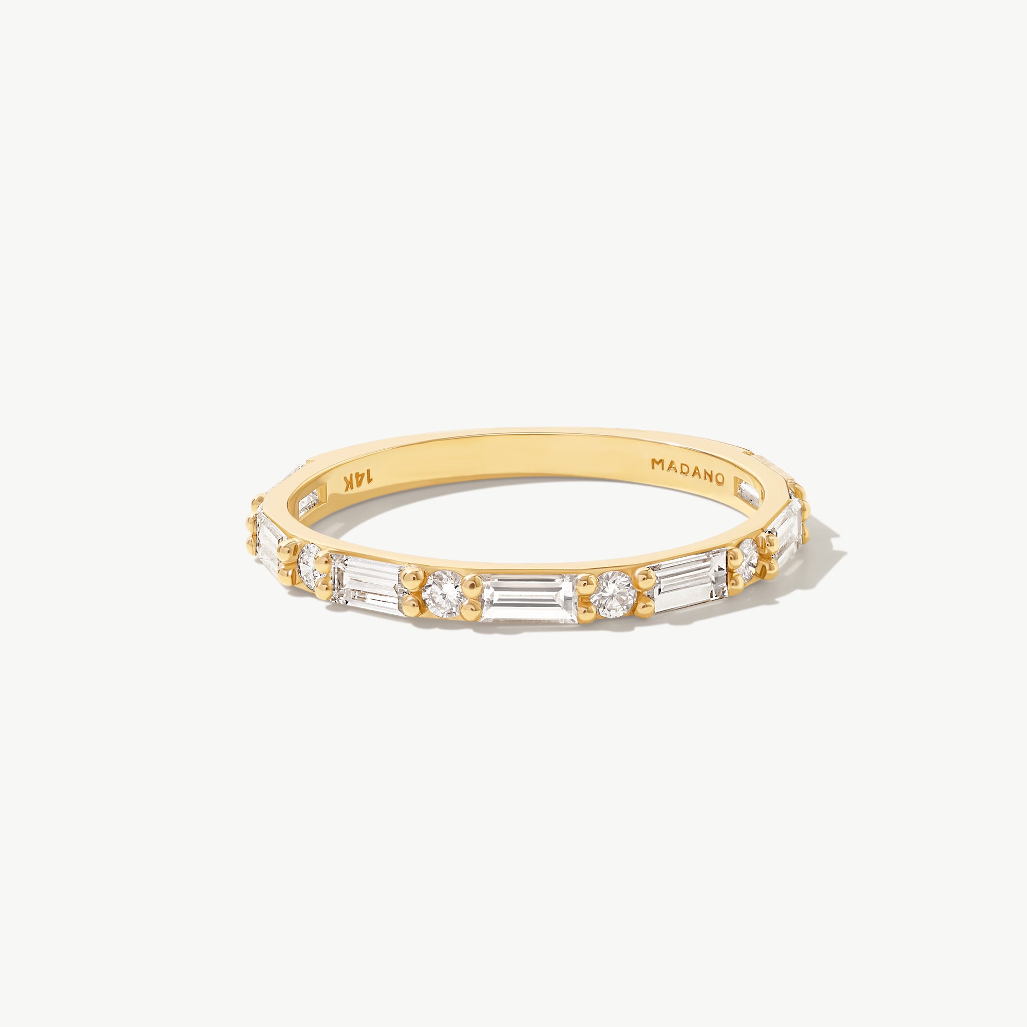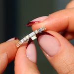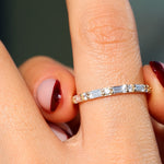 14K Real Solid Gold Baguette and Round Half Eternity Ring – Lab Grown Diamond Band