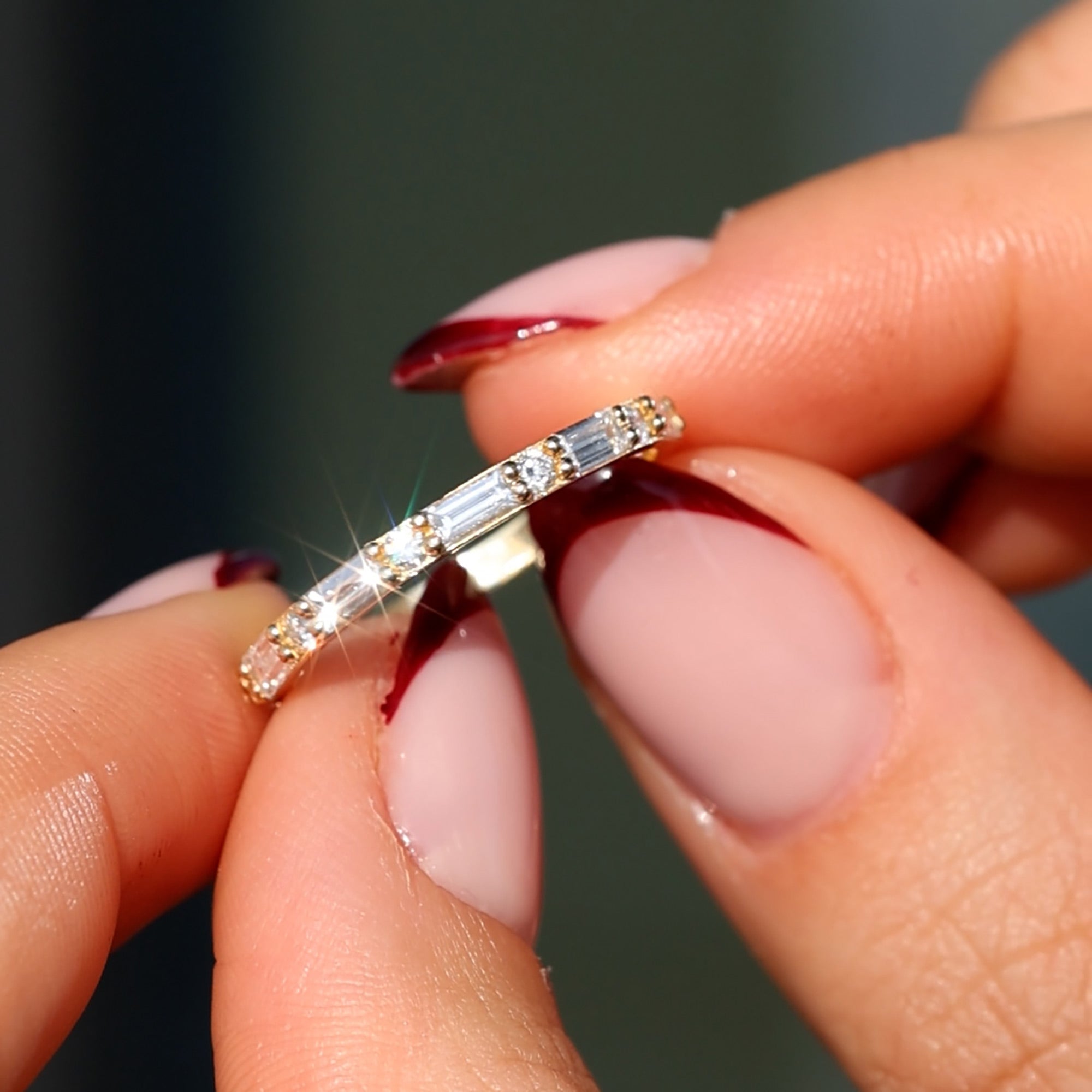 • Baguette Diamonds: 7 stones – 4x2mm, total 0.77 ct