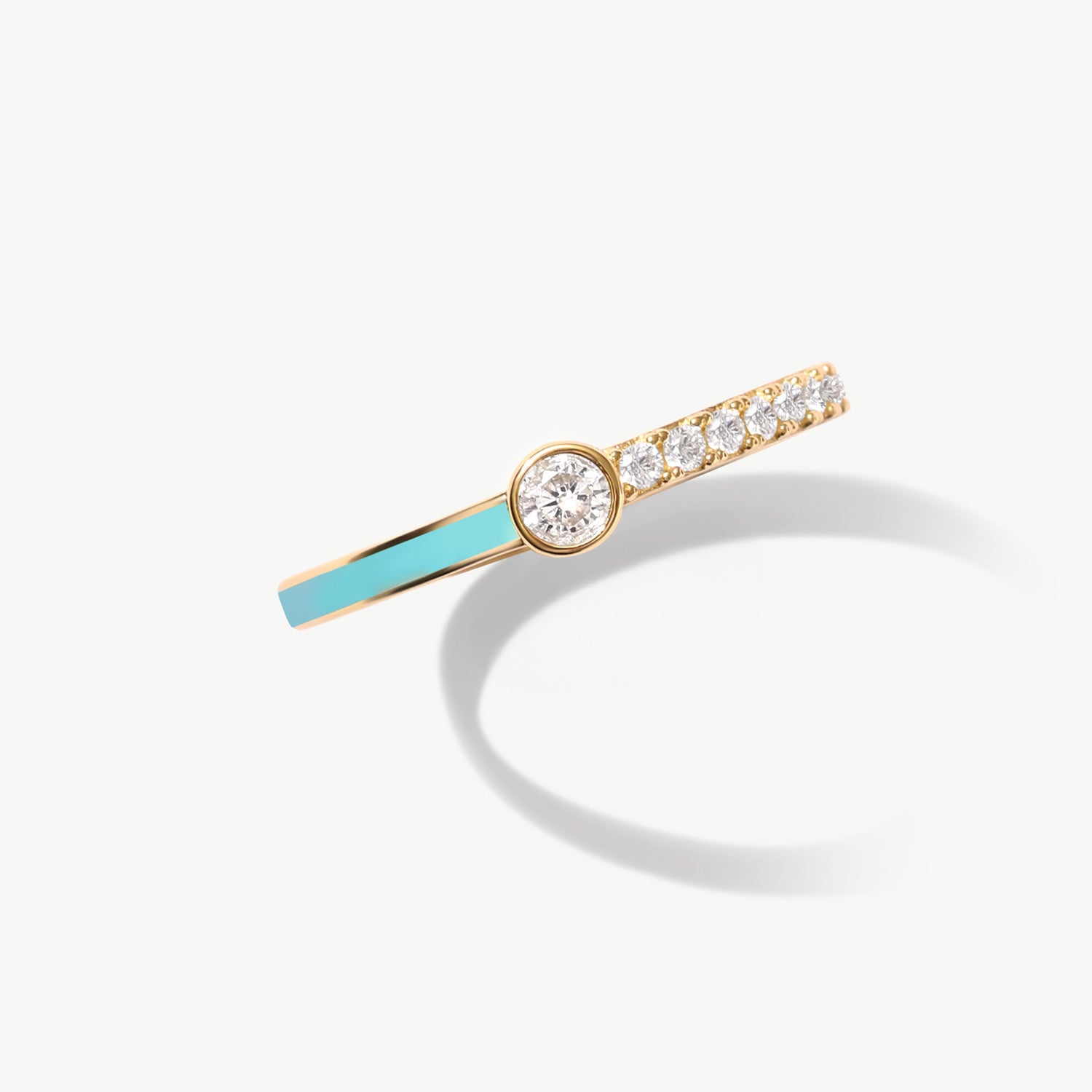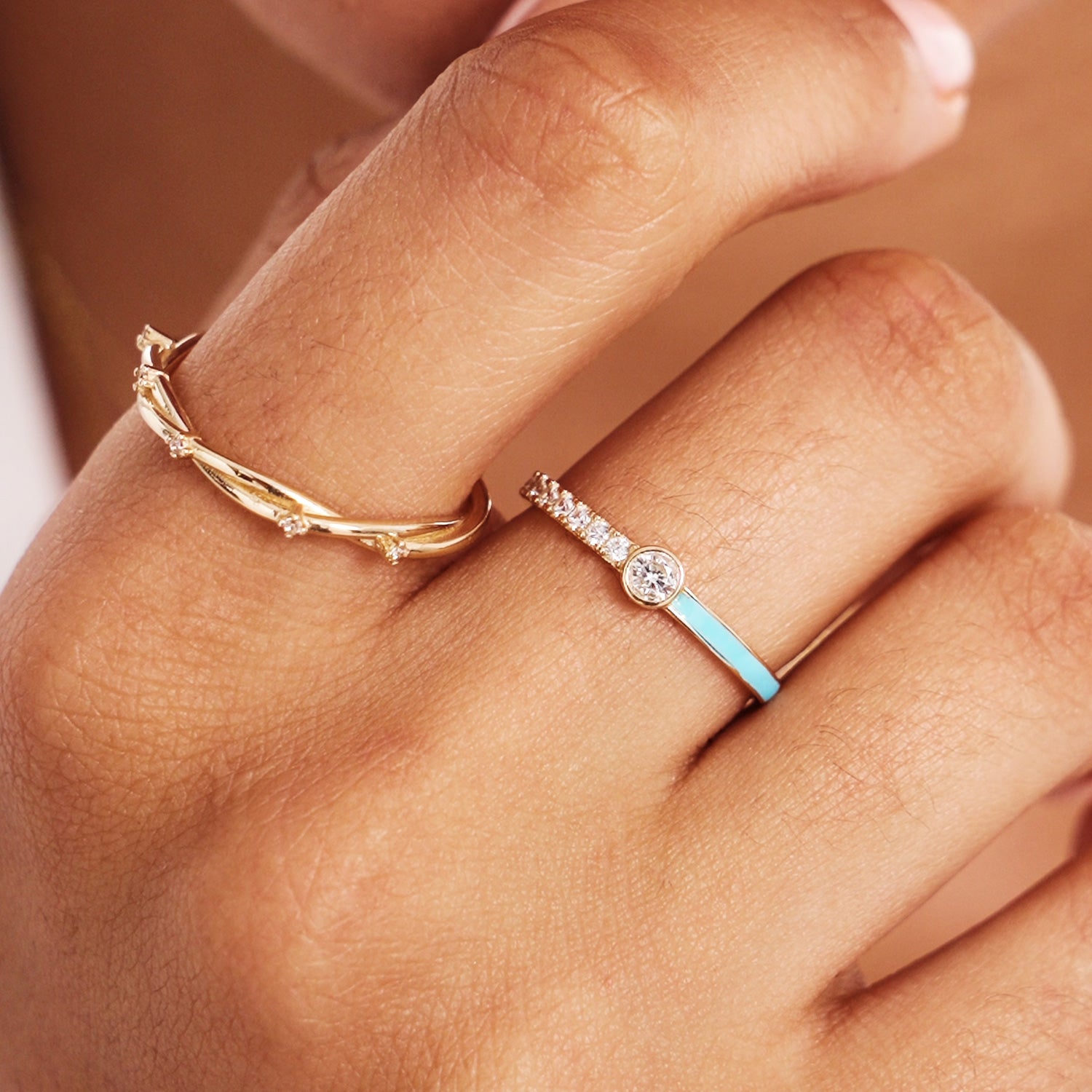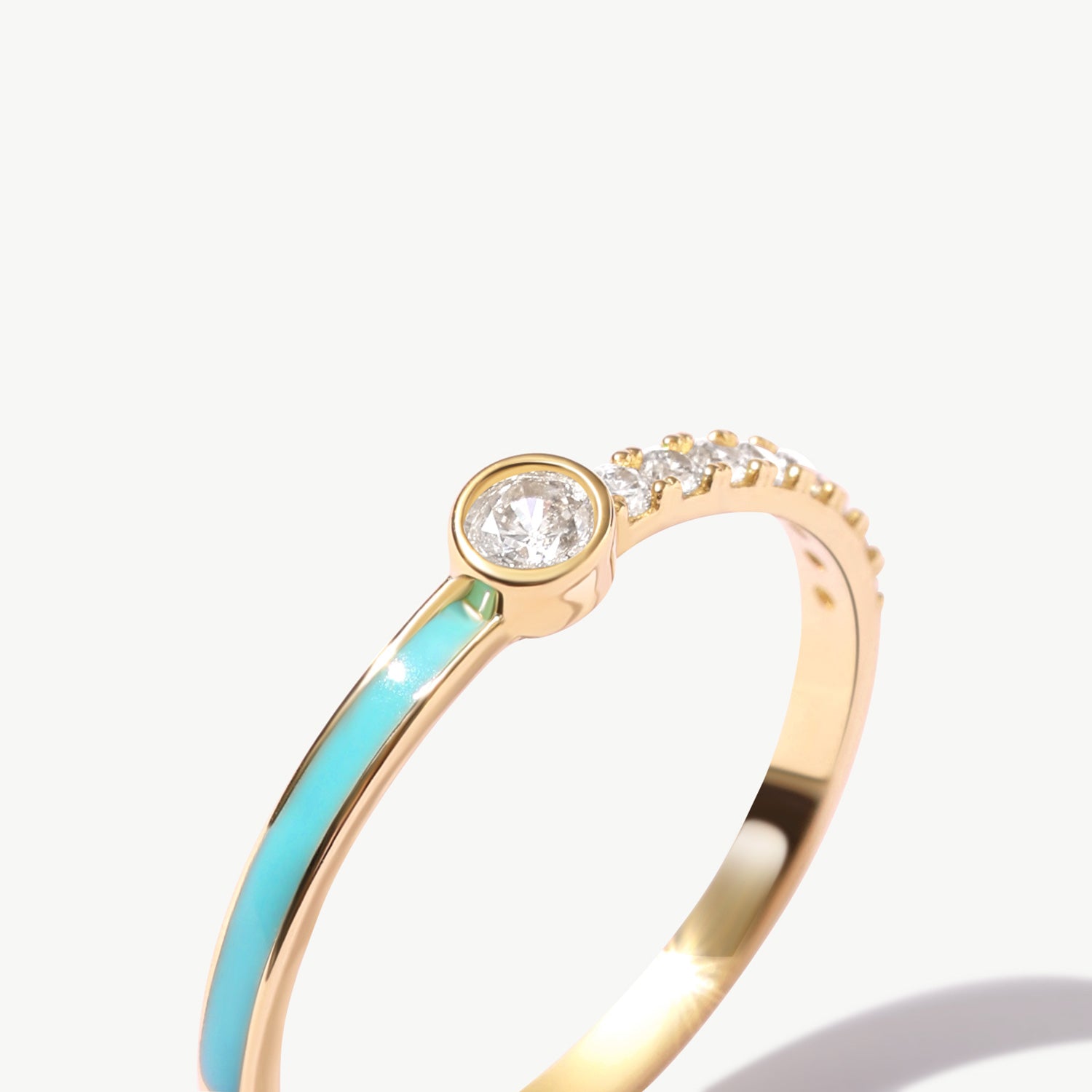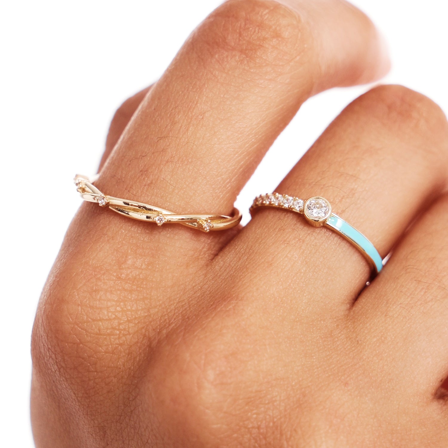 14K Solid Gold Personalized Enamel Ring, Dainty Colored Band for Women