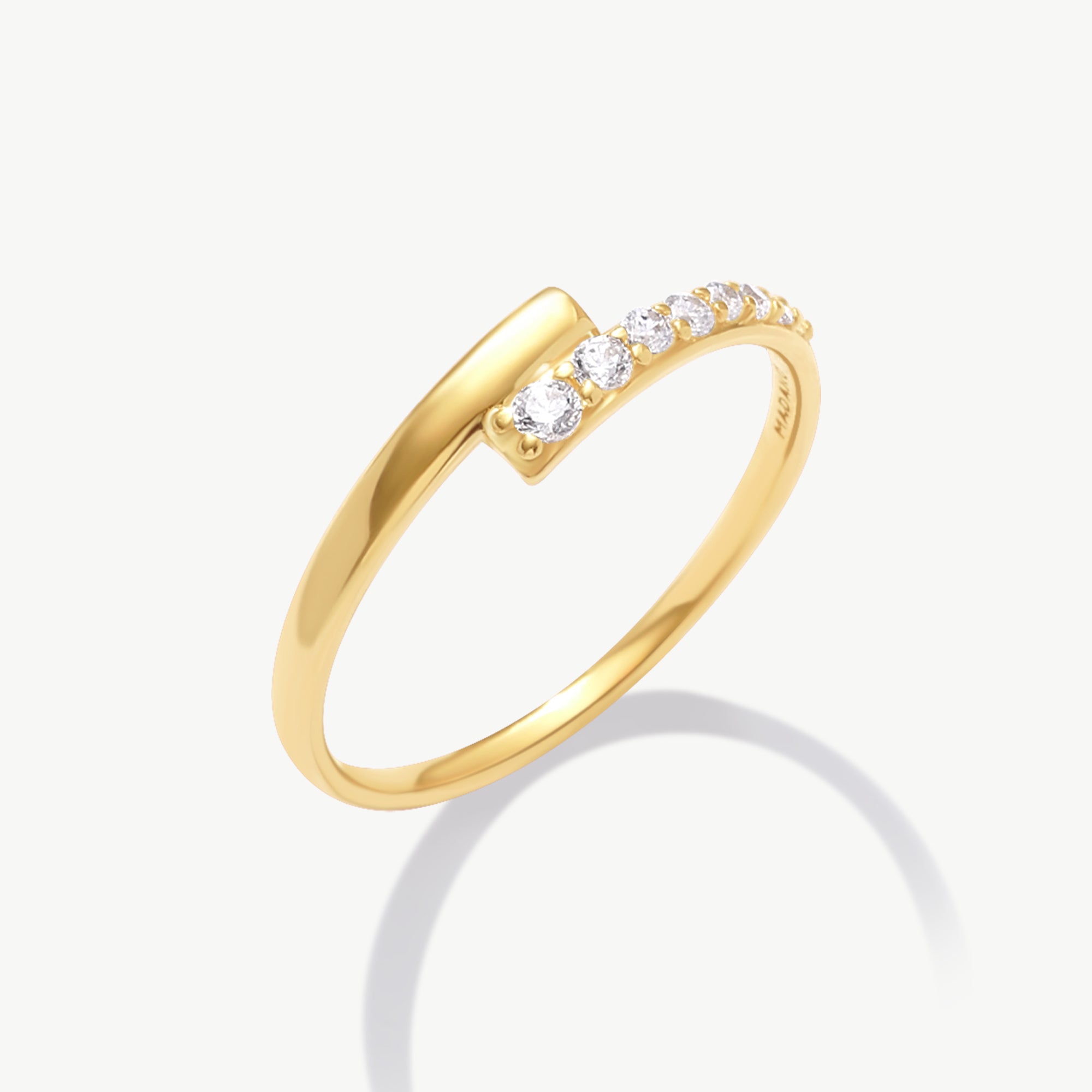 14K Solid Gold Diamond Bypass & Pavé Ring