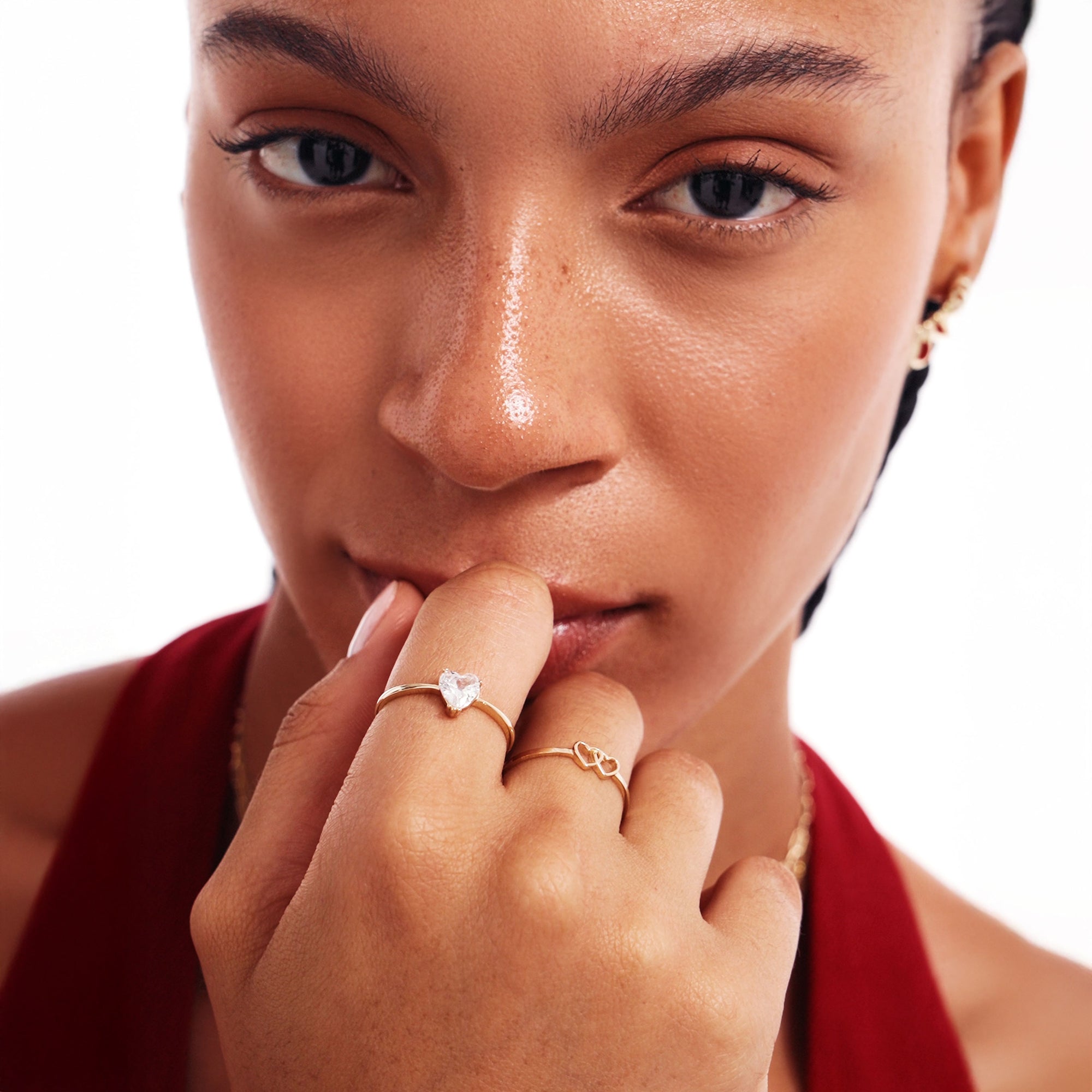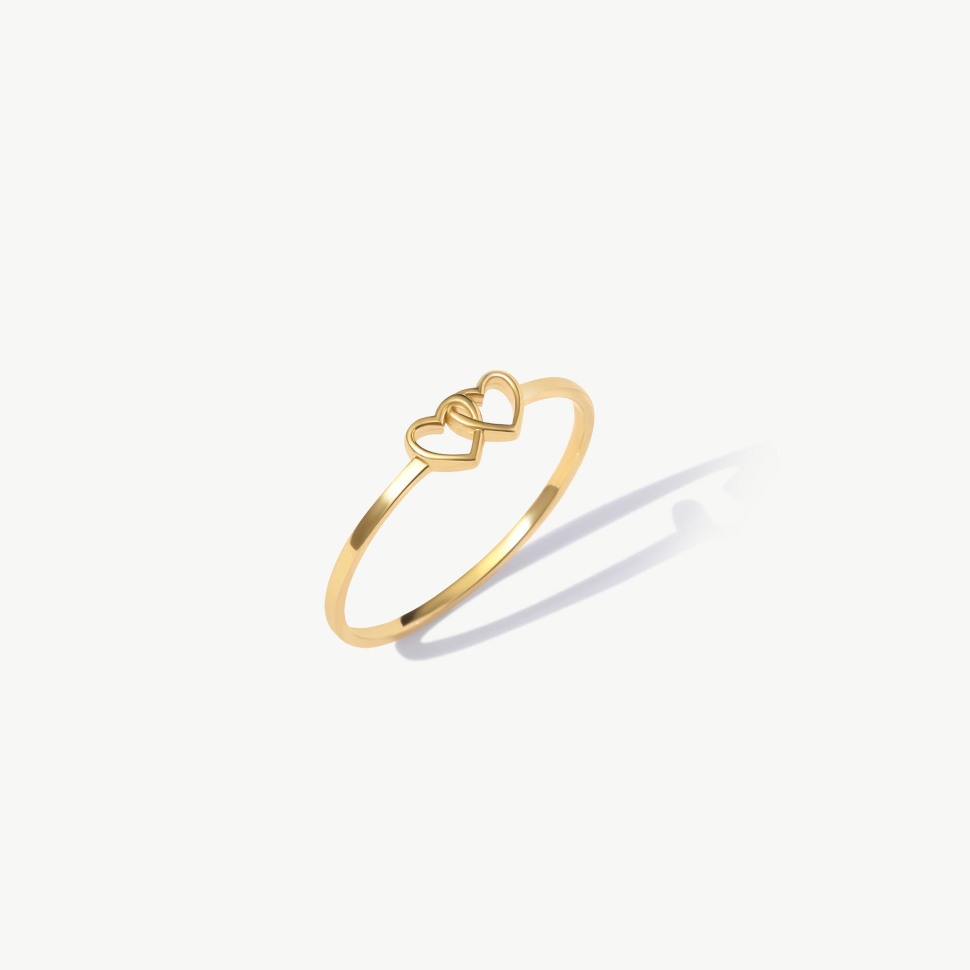 14K Solid Gold Open Heart Ring - Stacking Ring