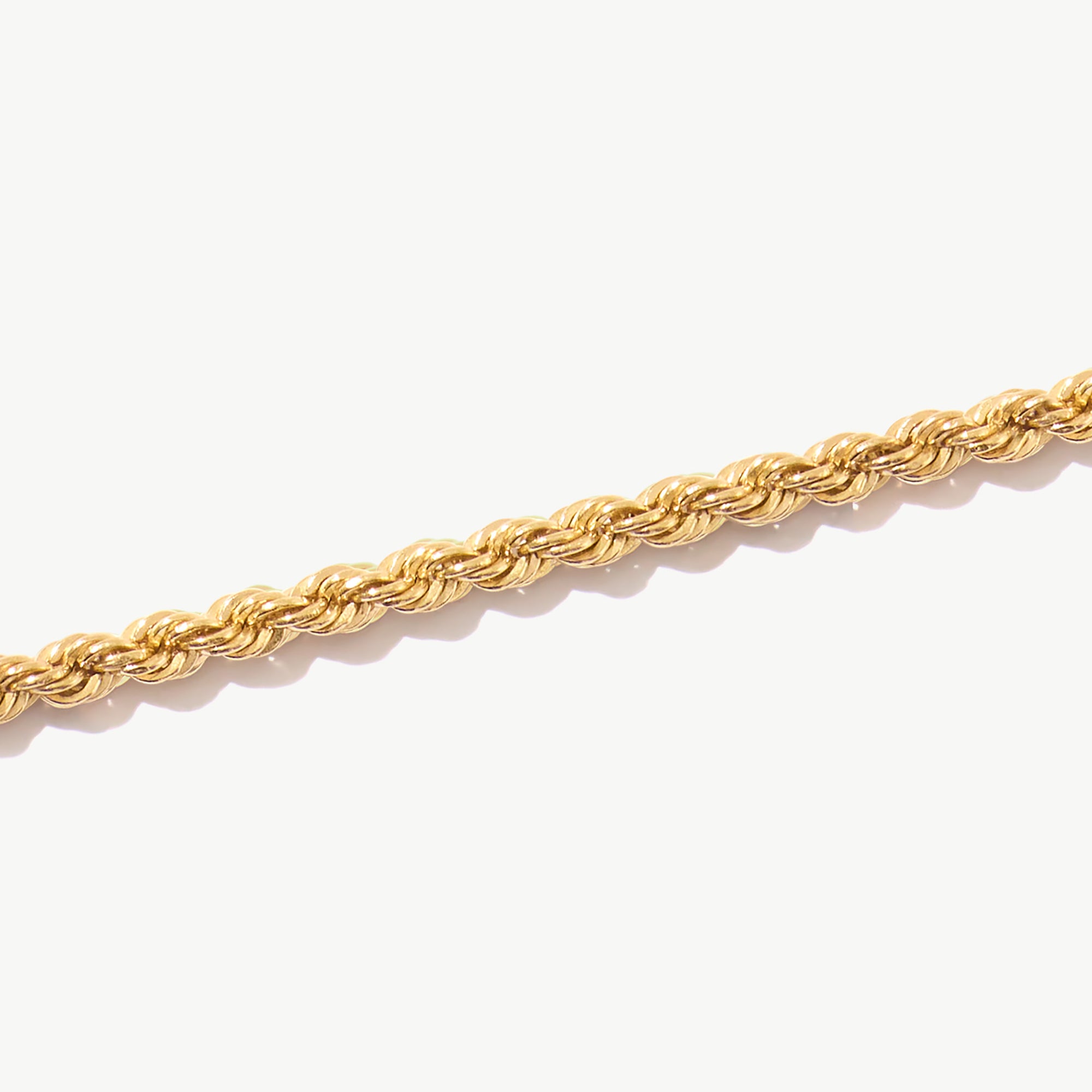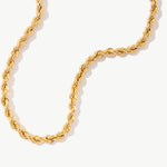 A 14K real solid gold thick rope chain necklace with a twisted design, featuring a lobster clasp closure, suitable for men and women, available in 14, 16, 18, and 20 inches, perfect for layering or as a standalone accessory.