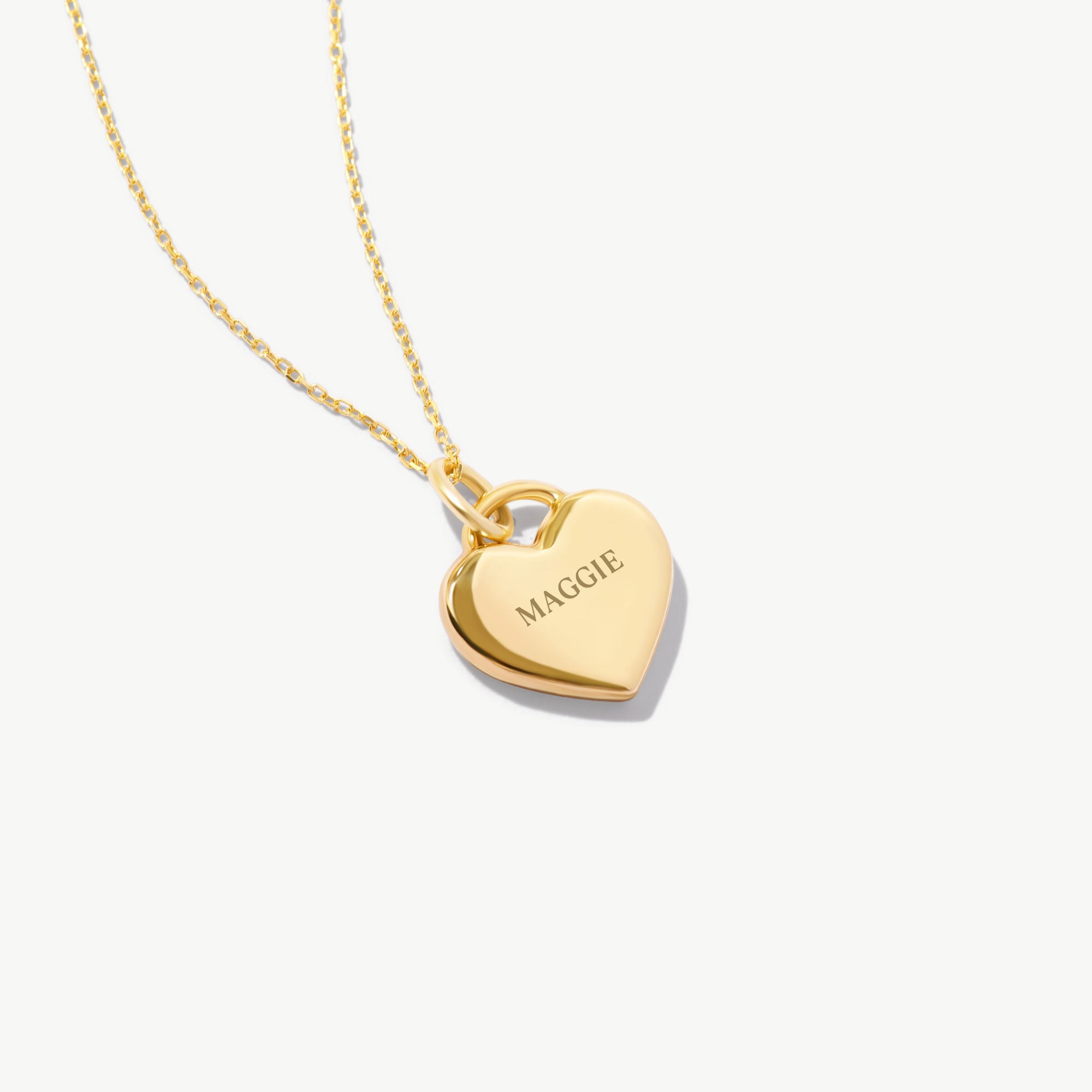14K Solid Engraved Gold Heart Necklace