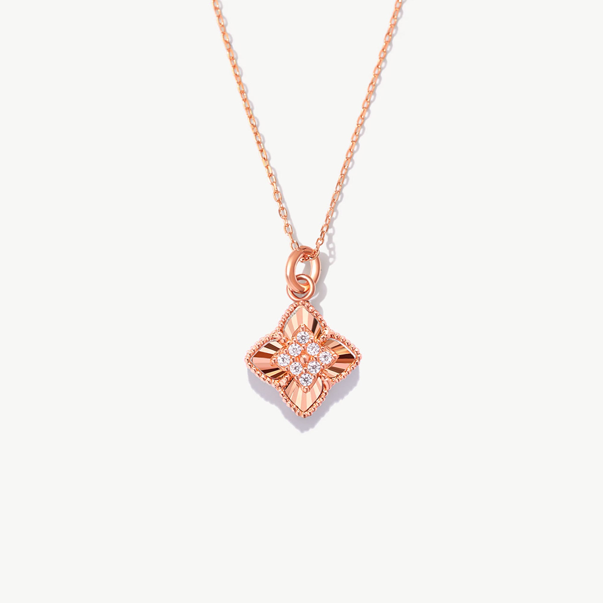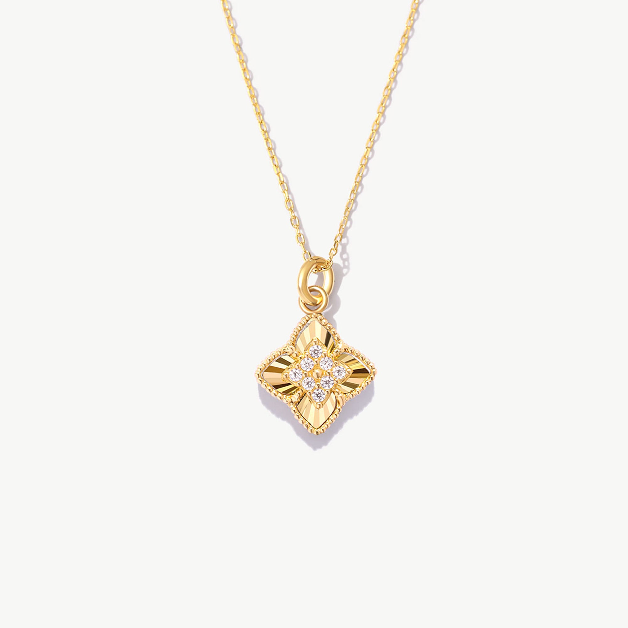 14K Solid Gold Four Leaf Clover Necklace: Lucky Charm Pendant
