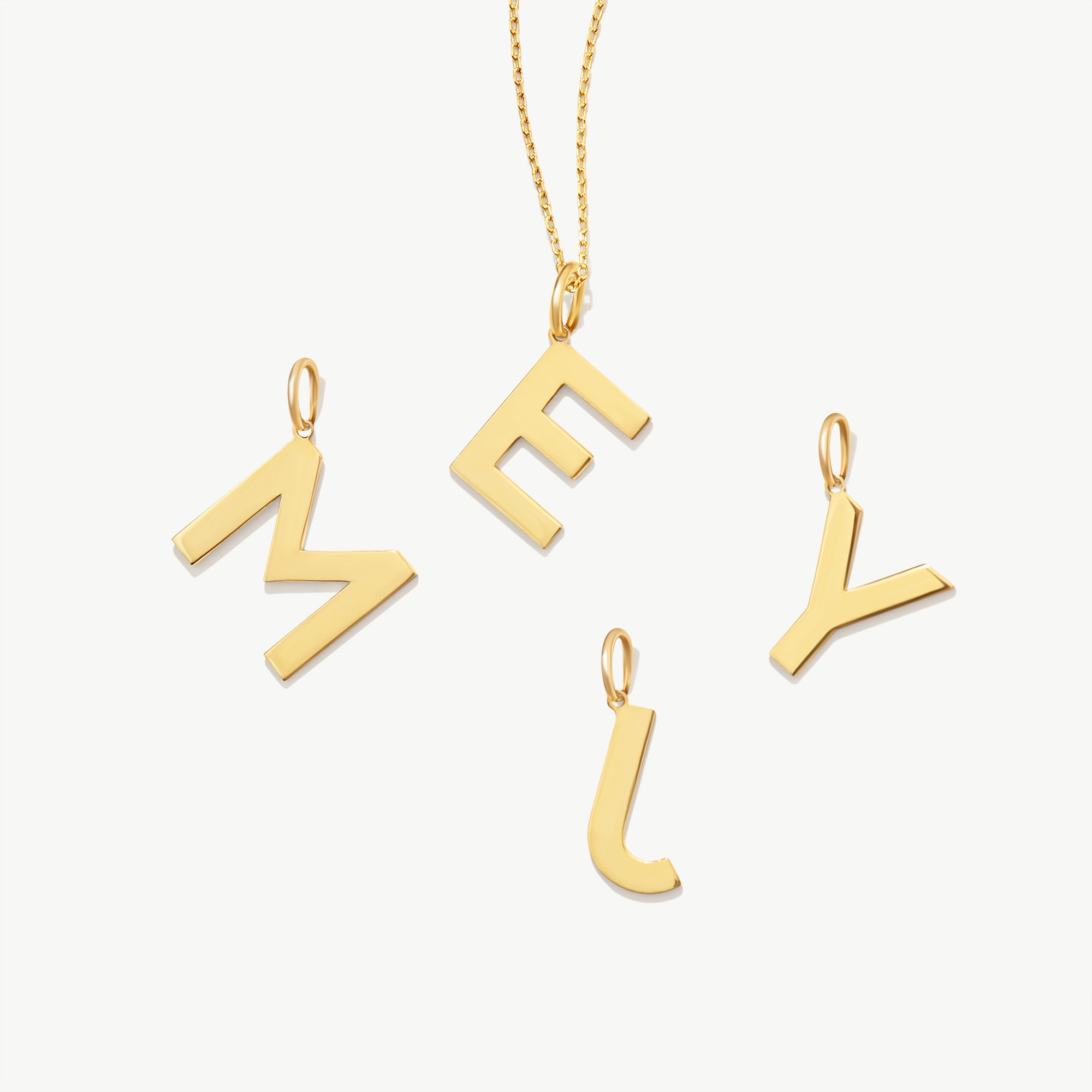 14K Solid Gold Initial Pendant, Personalized Letter Charm Necklace