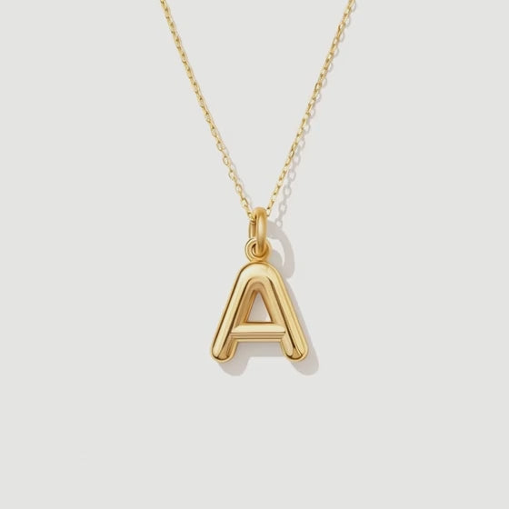 14K Solid Gold Bubble Letter Charm, Personalized Initial Pendant