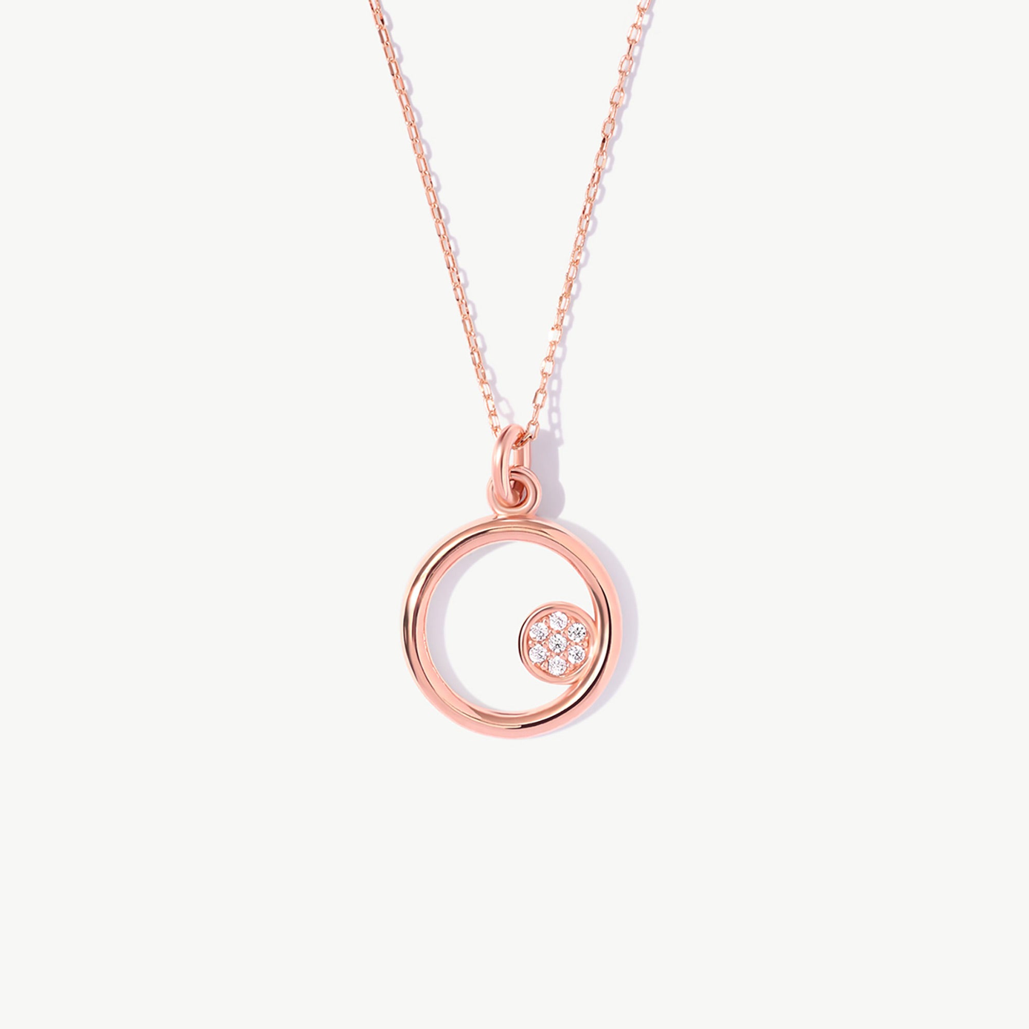 14k Solid Gold Circle Necklace: Dainty Interlocking Pendant