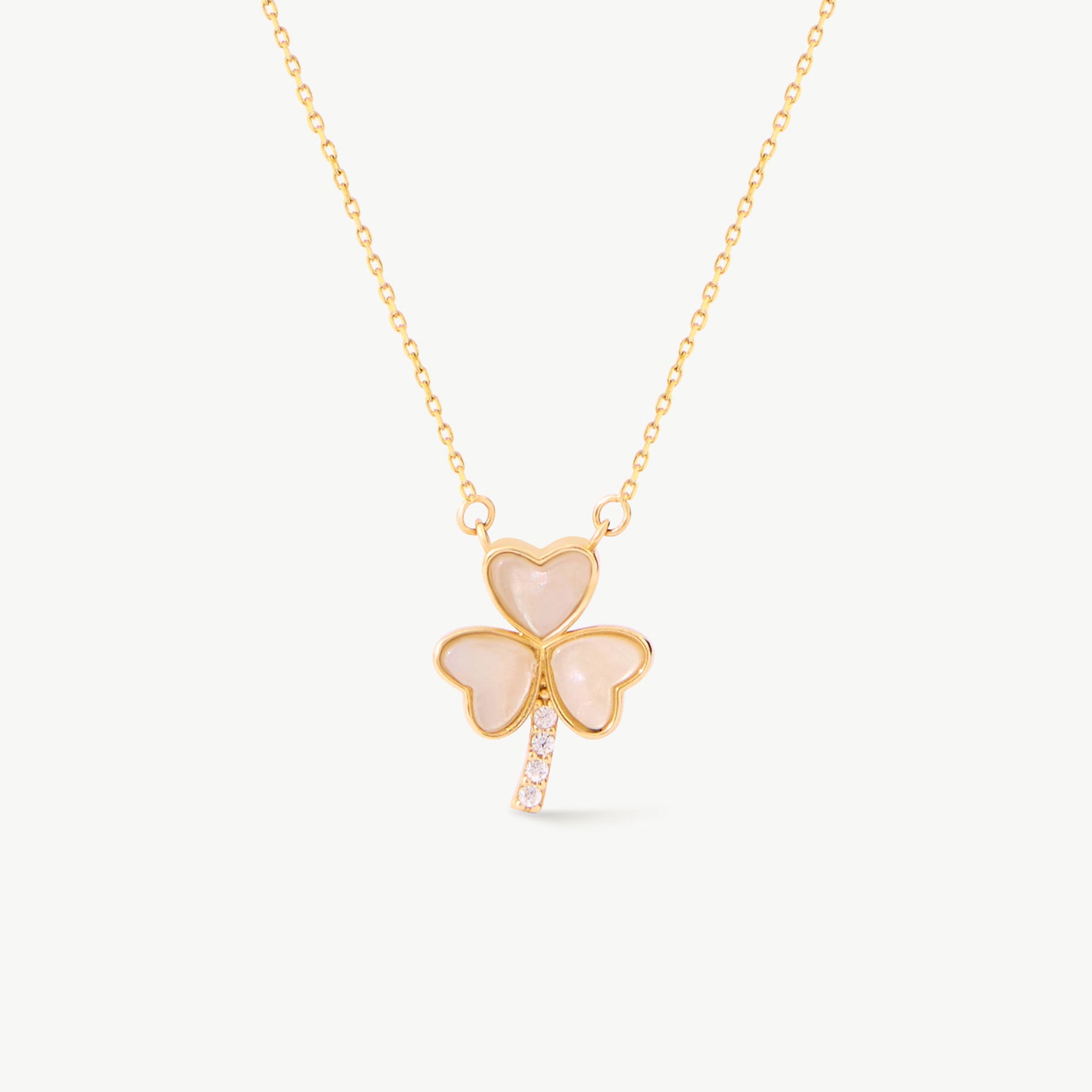 14K Solid Gold Three Leaf Clover in Mother Of Pearl