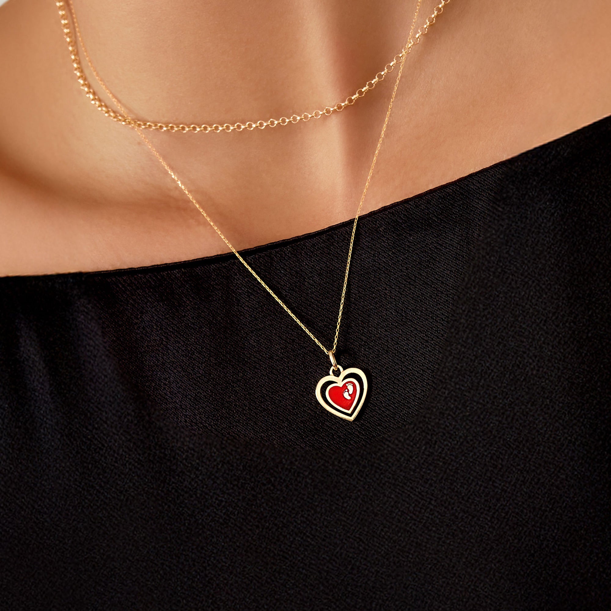 14K Solid Gold Evil Eye Necklace with Sapphire and Cubic Zirconia