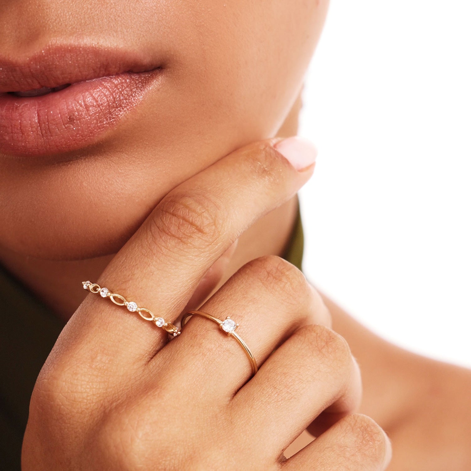 The 14K Real Solid Gold Dainty Solitaire Ring is the ultimate expression of understated beauty. Featuring a perfectly cut 3mm round stone in a classic prong setting, this piece blends minimalism with sophistication.