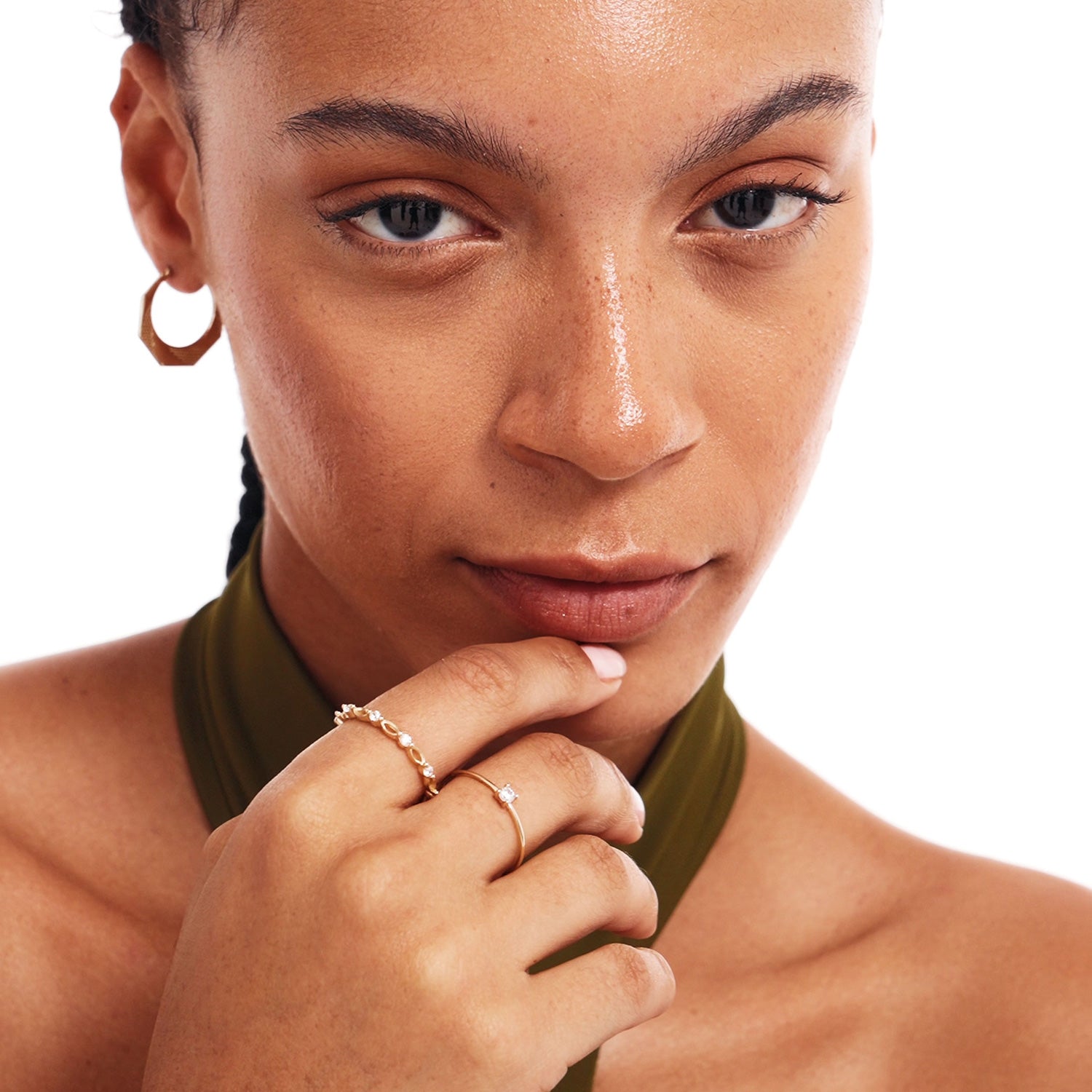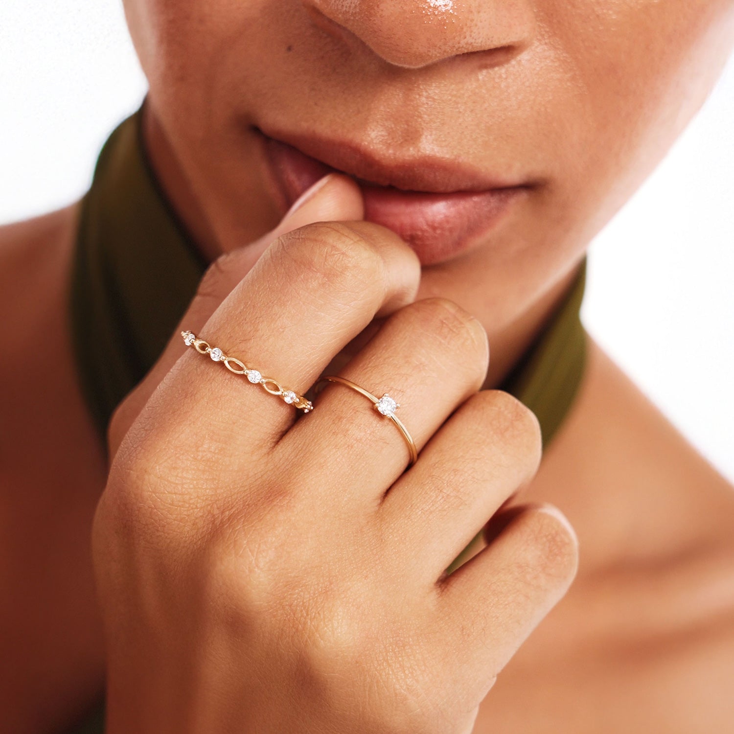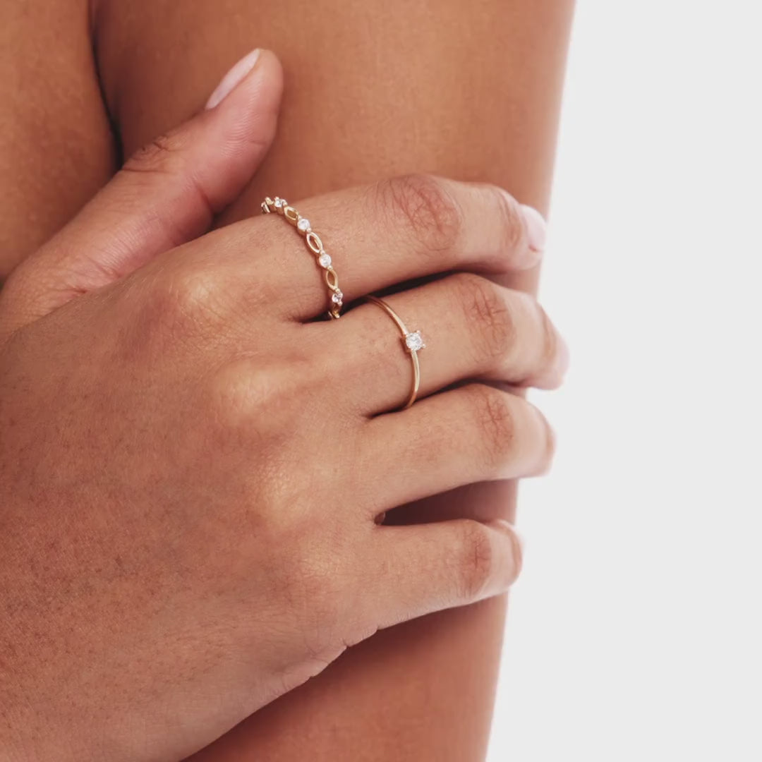 The sleek 1mm band gives the design an airy, delicate feel, making it ideal for stacking with other rings or wearing solo as a subtle statement. Its refined proportions make it equally suited for everyday wear and special occasions.